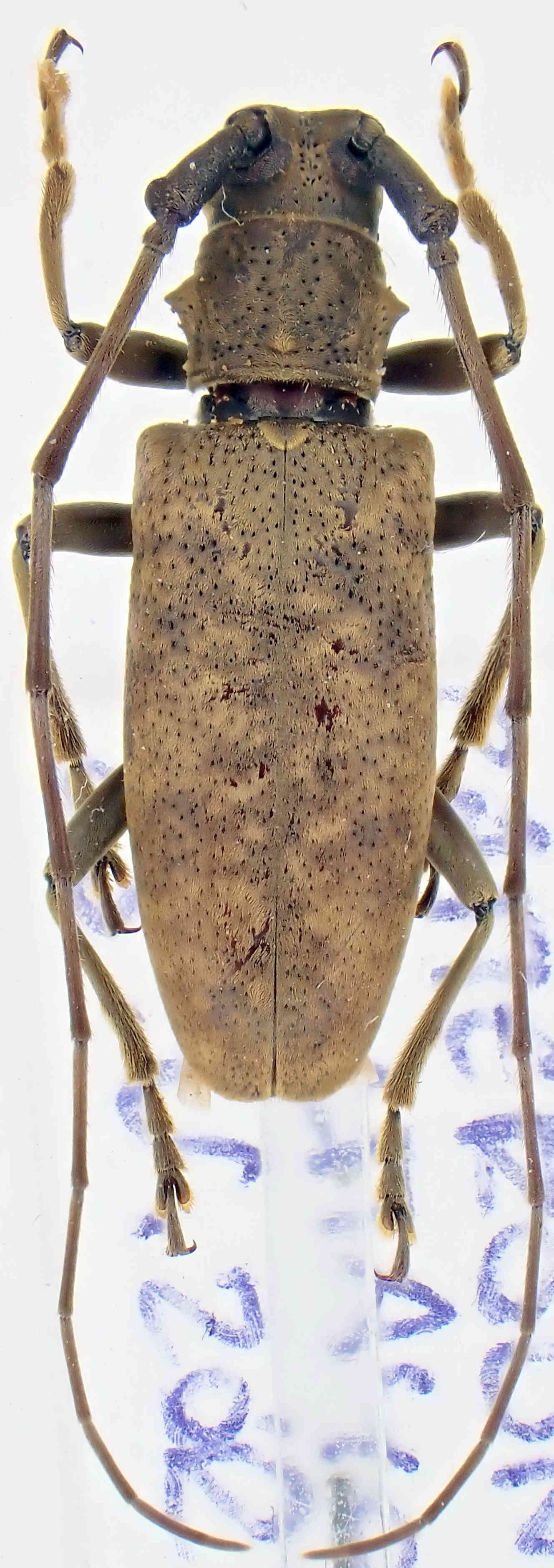 J'ai quelques exemplaires de Cameroun que Carlo m'avait donné. Le mâle a les antennes trois fois aussi long que le corps et je l'avais identifié comme Monochamus foveolatus (ici). Honnêtement je ne suis pas tout à fait sûr de cette identification. Jérôme pourrait nous aider?