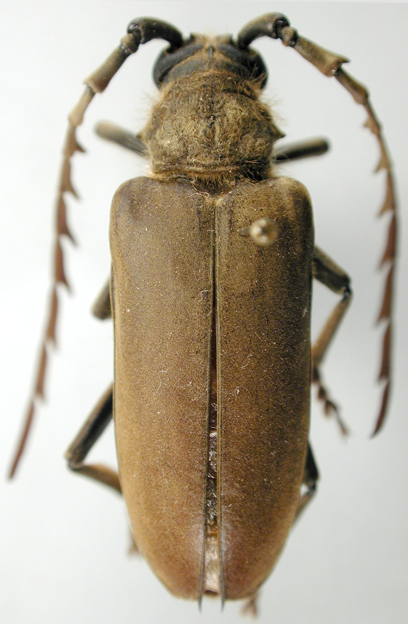 It should be Prosphilus pectinicornis Ferreira & Veiga Ferreira, 1953. Hairs on thorax golden yellow. Lateral spines small and sharp. Elytral apex angulate, with sutural spine.