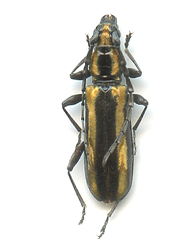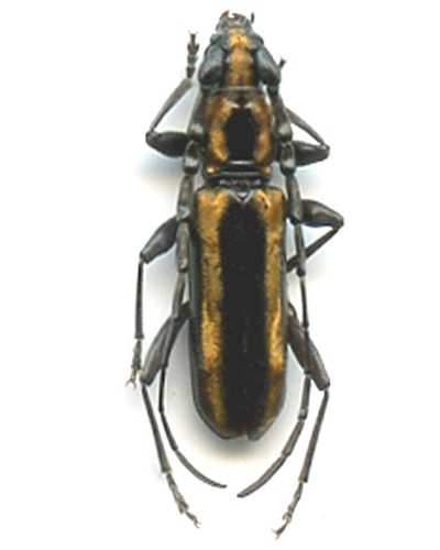 Now, basing on Adlbauer's writings which are so far the only complete study we have, I see 2 possibilities (the problem is that the photo does not clearly show the surface of the pronotum). - Either Ptycholaemus troberti Chevrolat, 1858, but usually this species has bright silvery vittae. Here they appear yellowish golden but this could be due to the photo, or some grease to remove. - Or we have Striatoptycholaemus variecollis Schwarzer, 1931, the large and flattened antennal joints fit well with this item. |