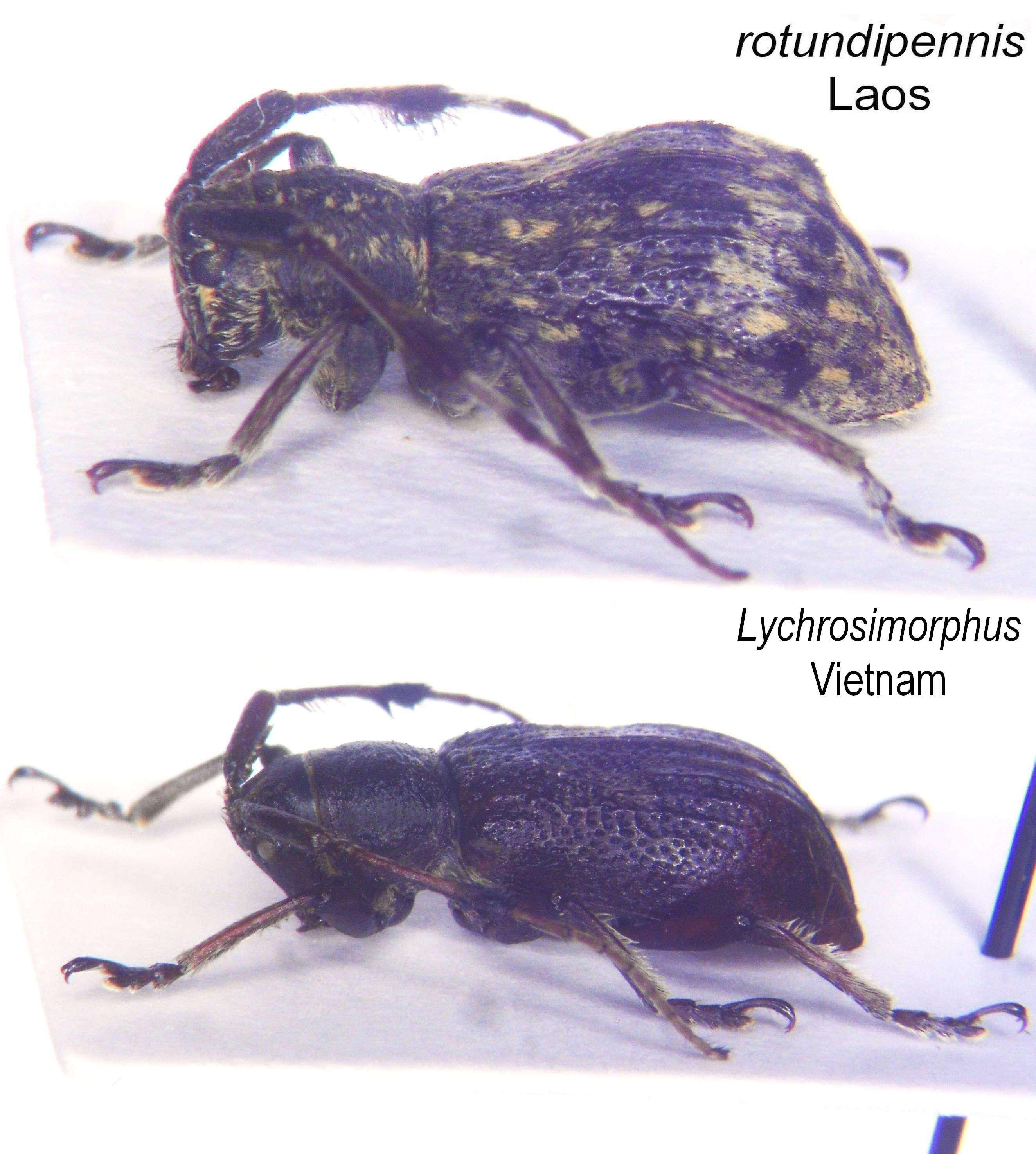 J'ai comparé avec mes 2 rotundipennis (Laos), et je peux éliminer cette espèce car, vue de profil, ce n'est pas du tout la même chose (la forme, le dénivelé, les crêtes). À moins qu'il ne s'agisse d'une différence mâle/femelle...Le 4ième segment antennaire est aussi beaucoup plus court.