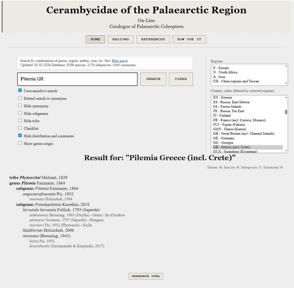 I've just launched an online version of Cerambycidae of the Palaearctic Region in On-Line version for public use. The portal offers extensive search options from various perspectives, giving the CPC a new lease of life as I continue to refine this project. Please share your feedback. I hope the tool will be useful to many people, not just longicornists.